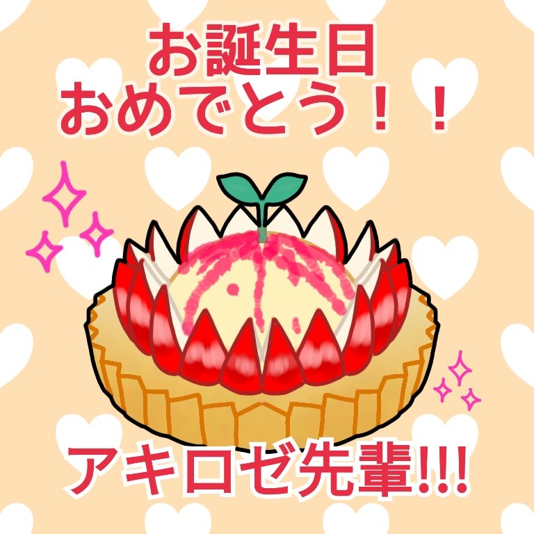 aki_rosenthal apple apple_slice character_name commentary english_commentary food foodification happy_birthday heart hololive kureiji_ollie_(artist) mixed-language_commentary no_humans objectification orange_background sparkle tart_(food) virtual_youtuber