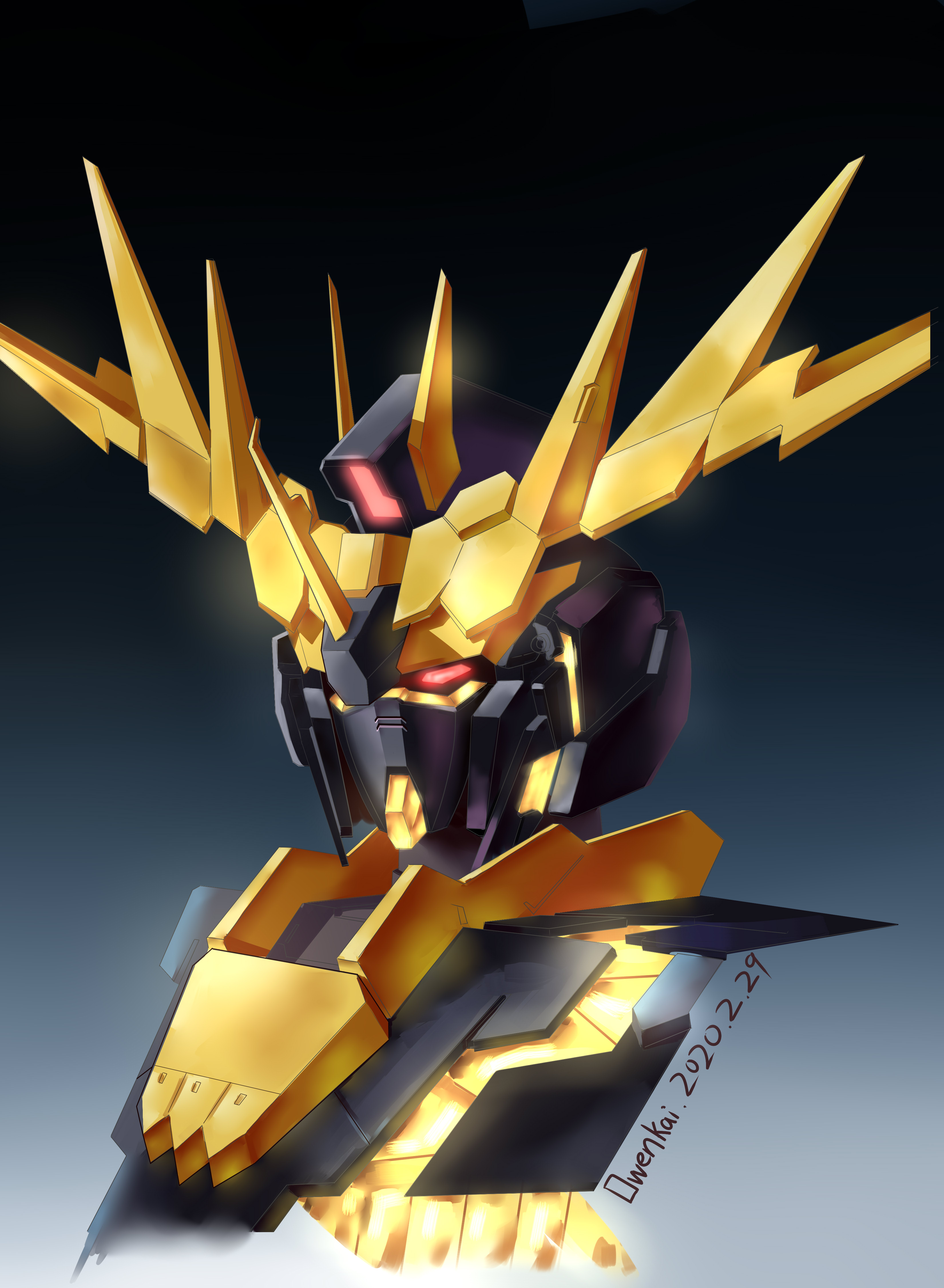 absurdres artist_name dated glowing glowing_eye gundam gundam_unicorn highres mecha mobile_suit no_humans nt-d red_eyes robot science_fiction solo sr-sao unicorn_gundam_banshee upper_body v-fin