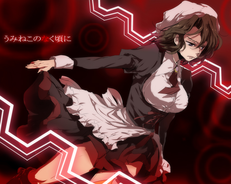 00s 1girl apron breasts brown_hair female_focus kl_(dgzonbi) maid maid_apron shannon_(umineko) solo umineko_no_naku_koro_ni
