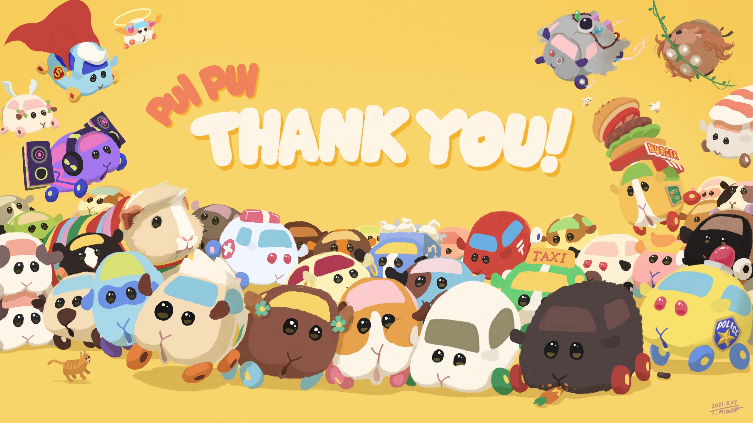 abbey_(pui_pui_molcar) adventure_molcar ambulance_molcar angel_wings animal animal_ears animal_focus arrow_(symbol) artist_name bird black_eyes burger cable cape carrot cat chappy_(pui_pui_molcar) character_request cheek_press choco_(pui_pui_molcar) clothed_animal commentary_request cross dated dj_molcar earrings eating emblem english_text everyone flying food food_on_face garbage_truck_molcar greek_cross grey_hair guinea_pig halo hamburger_molcar headphones hero_molcar highres hoop_earrings jewelry light_bulb long_hair lying_on_another misato_tomoki molcar motor_vehicle multicolored_clothes no_humans open_mouth orange_hair patrol_molcar plant postal_molcar potato_(pui_pui_molcar) pui_pui_molcar recycling_symbol red_cape red_eyes shadow shiromo_(pui_pui_molcar) shoshinsha_mark sign signature speaker stacking surprised sushi_molcar sweater swinging taxi_molcar teddy_(pui_pui_molcar) thank_you time_molcar trash_bag treasure_molcar tsumugi_(pui_pui_molcar) uneven_eyes vines wedding_molcar wheel white_hair wings yellow_background