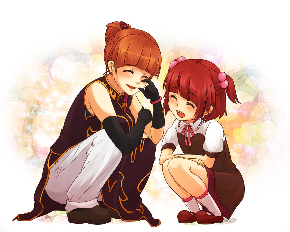 00s aged_down asymmetrical_gloves brown_hair child dress eringi_oishii gloves hair_bobbles hair_ornament happy orange_hair red_hair short_hair smile umineko_no_naku_koro_ni uneven_gloves ushiromiya_ange ushiromiya_eva
