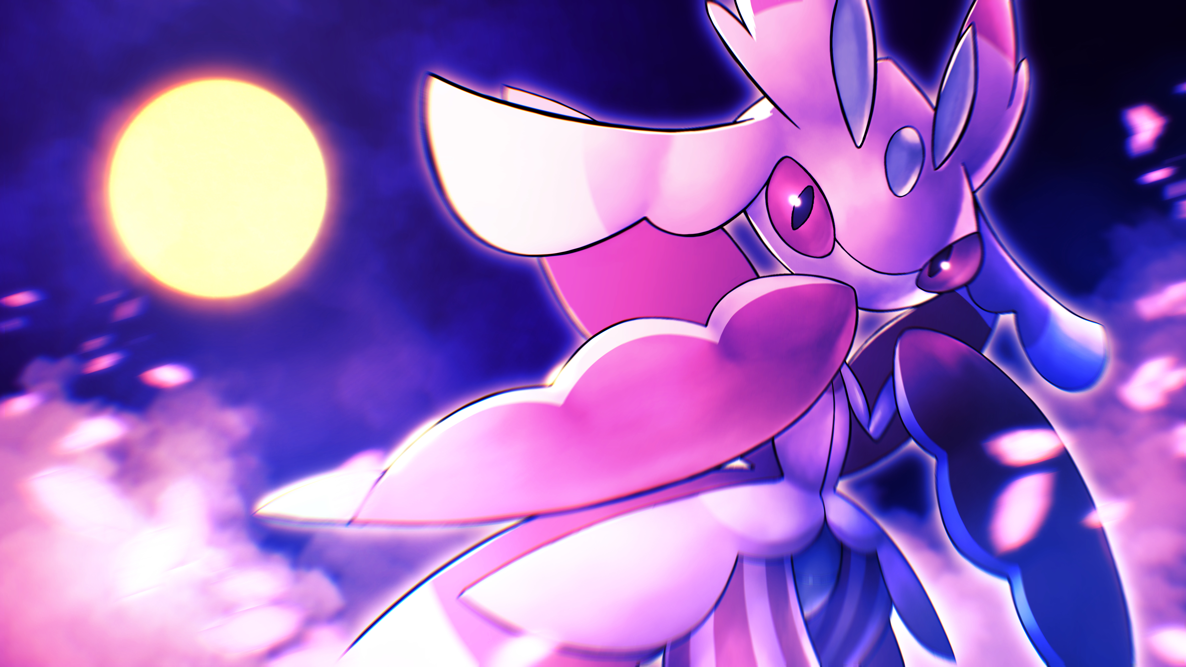 absurdres blurry commentary gen_7_pokemon higa-tsubasa highres looking_at_viewer lurantis moon nintendo no_humans outdoors outline petals pokemon pokemon_(creature) solo