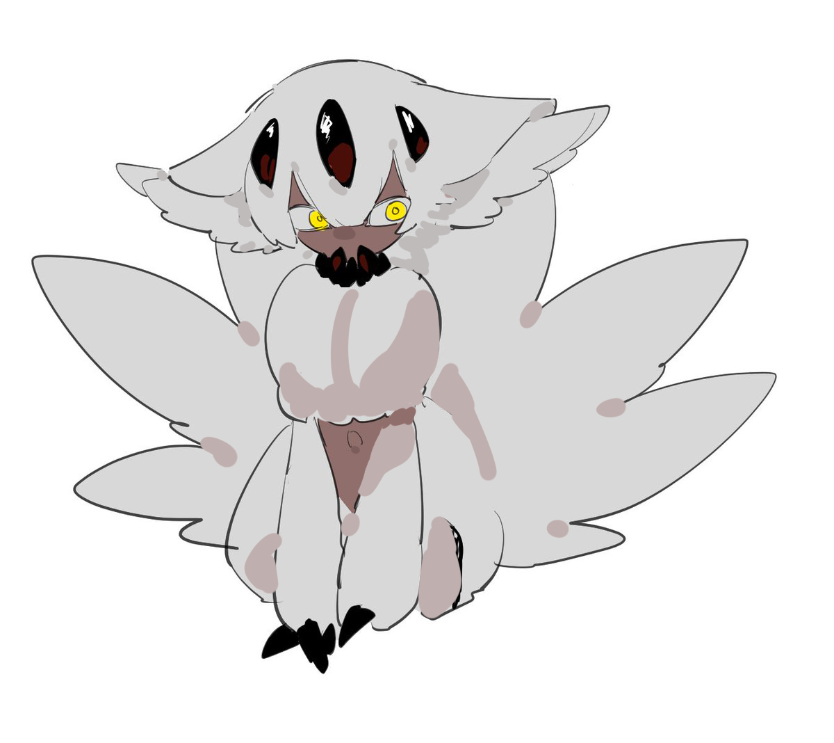 1girl animal_ear_fluff apios body_fur claws dark-skinned_female dark_skin faputa female_focus full_body furry furry_female grey_fur hand_to_own_mouth hands_up jpeg_artifacts knees_up looking_to_the_side made_in_abyss multiple_tails own_hands_together sidelocks simple_background sitting sketch solo tail white_background white_hair yellow_eyes