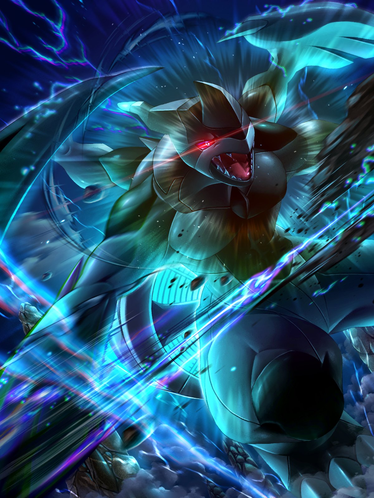 8686island blurry chromatic_aberration claws commentary_request electricity gen_5_pokemon glowing glowing_eyes highres legendary_pokemon light_trail nintendo no_humans open_mouth pokemon pokemon_(creature) red_eyes sharp_teeth solo teeth tongue zekrom zekrom_(overdrive)