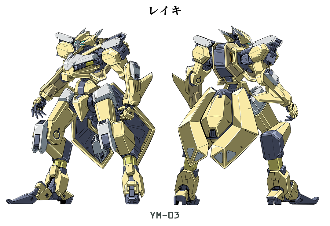 character_name reference_sheet clenched_hand kyoukai_senki mecha multiple_views no_humans official_art open_hand reiki_(kyoukai_senki) robot science_fiction standing transparent_background