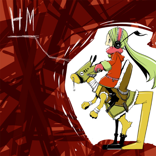 1girl animal child female_focus green_hair hatsune_miku kuro1671 long_hair riding riding_animal robot solo twintails vocaloid