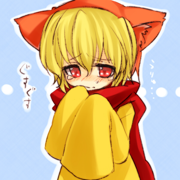 00s 1boy animal_ears blonde_hair blush child male_focus niji_(nijioki) red_eyes sakutarou_(umineko) scarf solo tears translated umineko_no_naku_koro_ni