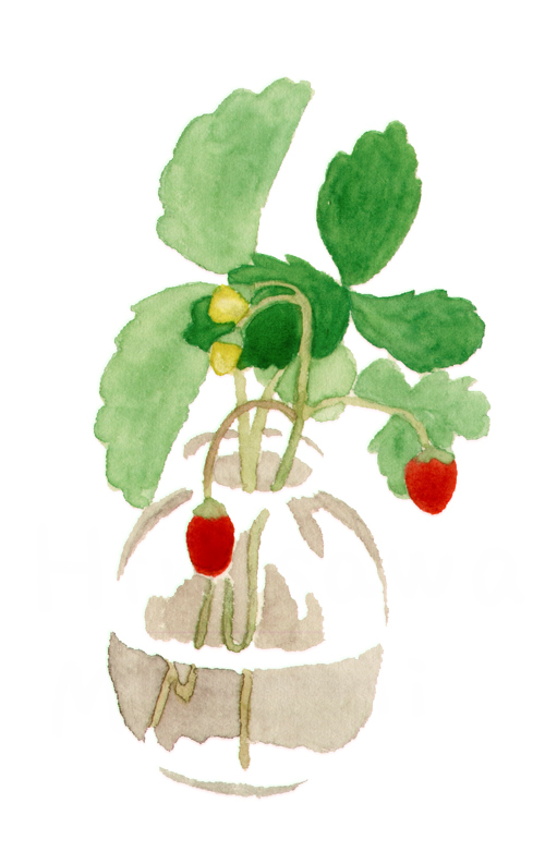 artist_name blending bud chromatic_aberration food fruit hirasawa_minami leaf no_humans no_lineart original partially_immersed plant refraction simple_background still_life strawberry transparent vase water white_background