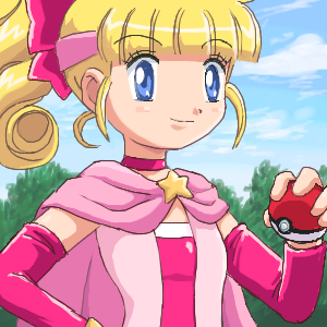 1girl artist_request blonde_hair blue_eyes child female_focus hazel_(pokemon) lowres magical_pokemon_journey nintendo outdoors poke_ball pokemon solo