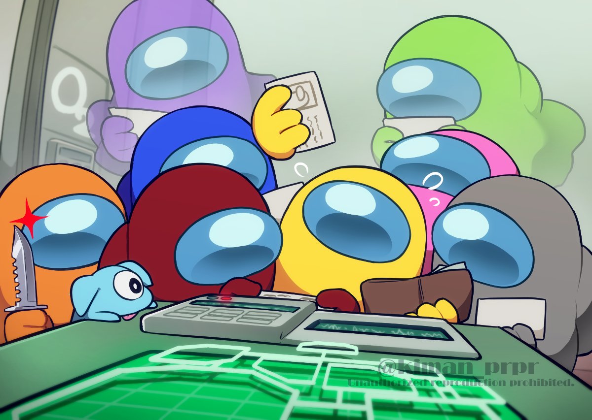 among_us arm_up blue_(among_us) card crewmate_(among_us) disembodied_hand flying_sweatdrops ghost green_(among_us) helmet heropin holding holding_card imminent_assassination impostor_(among_us) kiman knife orange_(among_us) pink_(among_us) portmanteau purple_(among_us) rayman_limbs red_(among_us) space_helmet spacesuit standing twitter_username watermark yellow_(among_us)