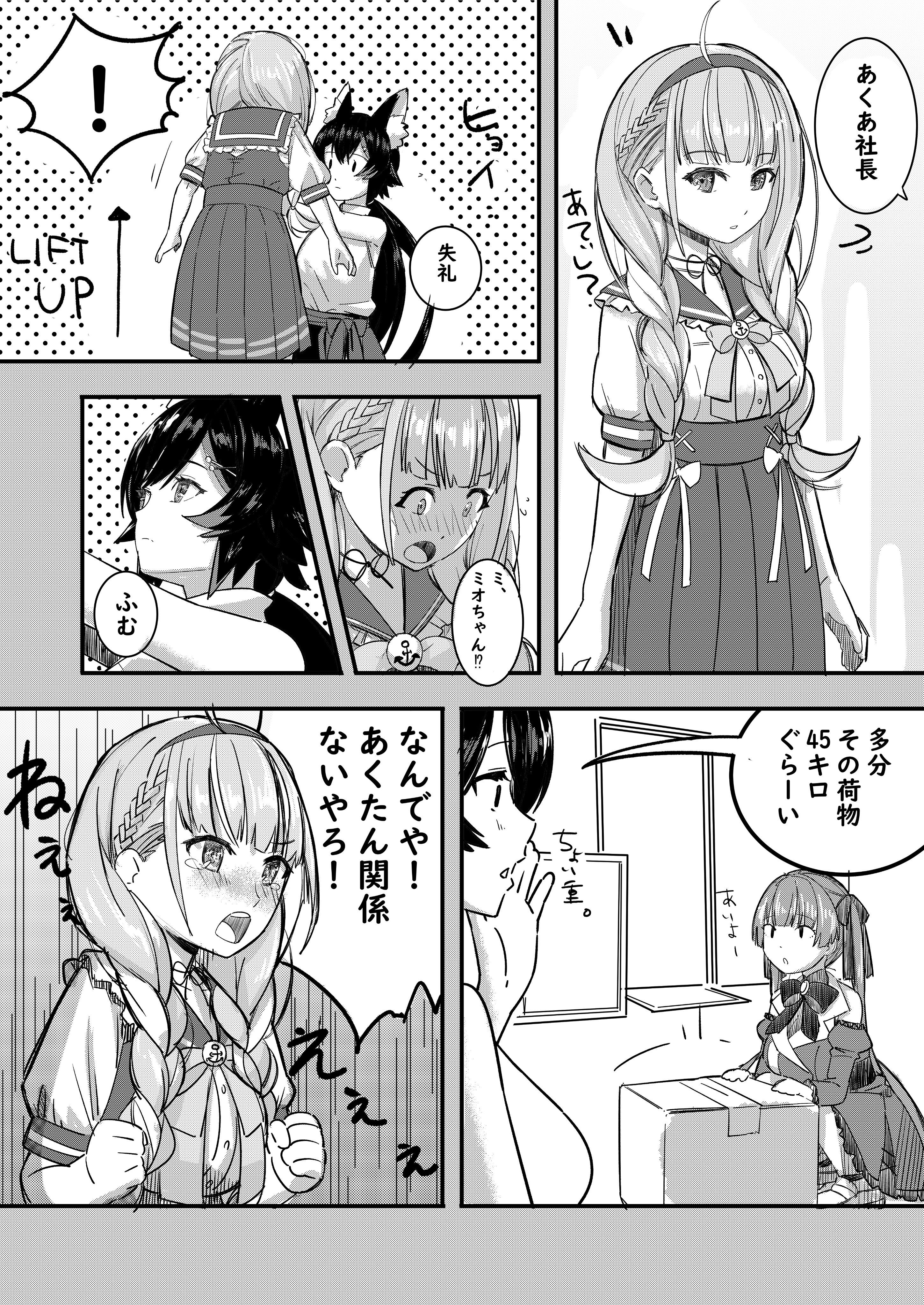 3girls absurdres ahoge ahoyhoi anchor_symbol animal_ears blush box braid breasts cardboard_box carrying clenched_hands greyscale hairband high-waist_skirt highres hololive houshou_marine houshou_marine_(gothic_lolita) medium_breasts minato_aqua minato_aqua_(sailor) monochrome multicolored_hair multiple_girls ookami_mio ookami_mio_(street) open_mouth pleated_skirt skirt streaked_hair tail tears translated twin_braids twintails virtual_youtuber wolf_ears wolf_girl wolf_tail
