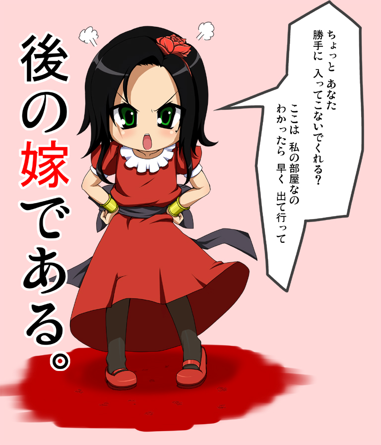 1girl aged_down angry black_hair child deborah_(dq5) dragon_quest dragon_quest_v enomori female_focus fume green_eyes hands_on_own_hips mole pantyhose solo translation_request
