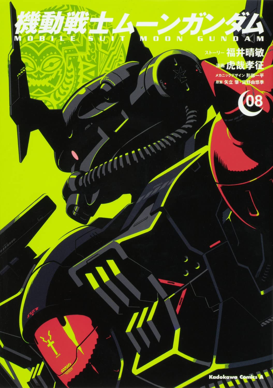 cable copyright_name cover cover_page gundam gyoubu_ippei highres looking_down manga_cover mecha mobile_suit moon_gundam no_humans official_art one-eyed pink_eyes robot science_fiction solo zaku zaku_iv