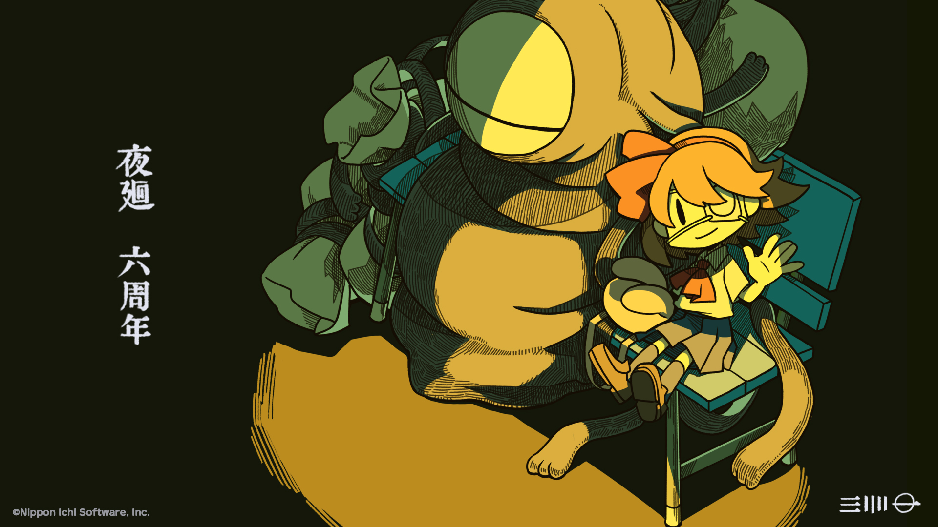 1girl animal_bag anniversary artist_request bag bench bow brown_hair collared_shirt hair_bow hairband highres kneehighs loafers looking_at_viewer monster neckerchief nippon_ichi official_art protagonist_(yomawari) rabbit_bag red_hairband red_neckerchief shirt shoes short_hair shoulder_bag sitting skirt smile socks solo tentacles waving yomawari yomawari-san yomawari_(series)
