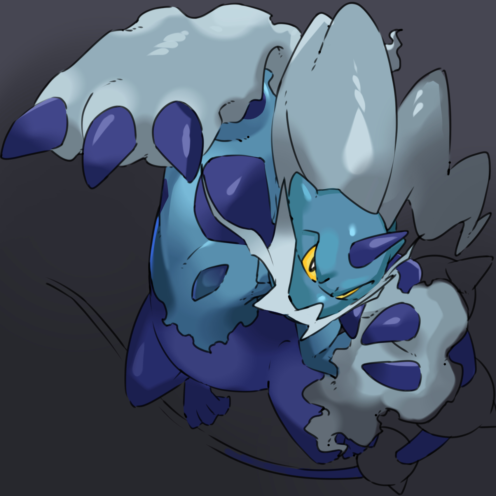 bad_id bad_pixiv_id black_eyes bright_pupils claws colored_sclera commentary_request facial_hair gen_5_pokemon highres legendary_pokemon looking_at_viewer menrui+alpha mustache nintendo no_humans partially_colored pokemon pokemon_(creature) thundurus thundurus_(therian) white_pupils yellow_sclera