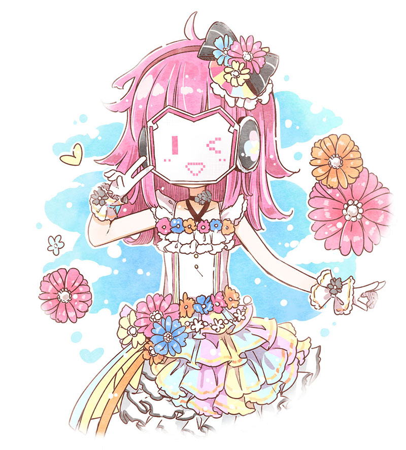 1girl ;) artist_name artist_request back_bow bare_shoulders black_bow black_choker blunt_bangs blush bow breasts choker collarbone criss-cross_halter dress female_focus flat_chest flower flower_dress frilled_dress frilled_shirt_collar frilled_skirt frills gloves hair_bow hair_flower hair_ornament halterneck headphones heart looking_at_viewer love_live! love_live!_nijigasaki_high_school_idol_club love_live!_school_idol_festival love_u_my_friends mask miniskirt one_eye_closed parted_lips pink_hair plaid_clothes plaid_dress plaid_skirt pleated pleated_dress pleated_skirt purple_skirt rainbow_skirt ribbon short_hair skirt sleeveless small_breasts smile solo star_(symbol) star_print tennoji_rina v white_bow white_dress white_gloves white_skirt white_wrist_cuffs wink wrist_cuffs you_and_i_(love_live!)