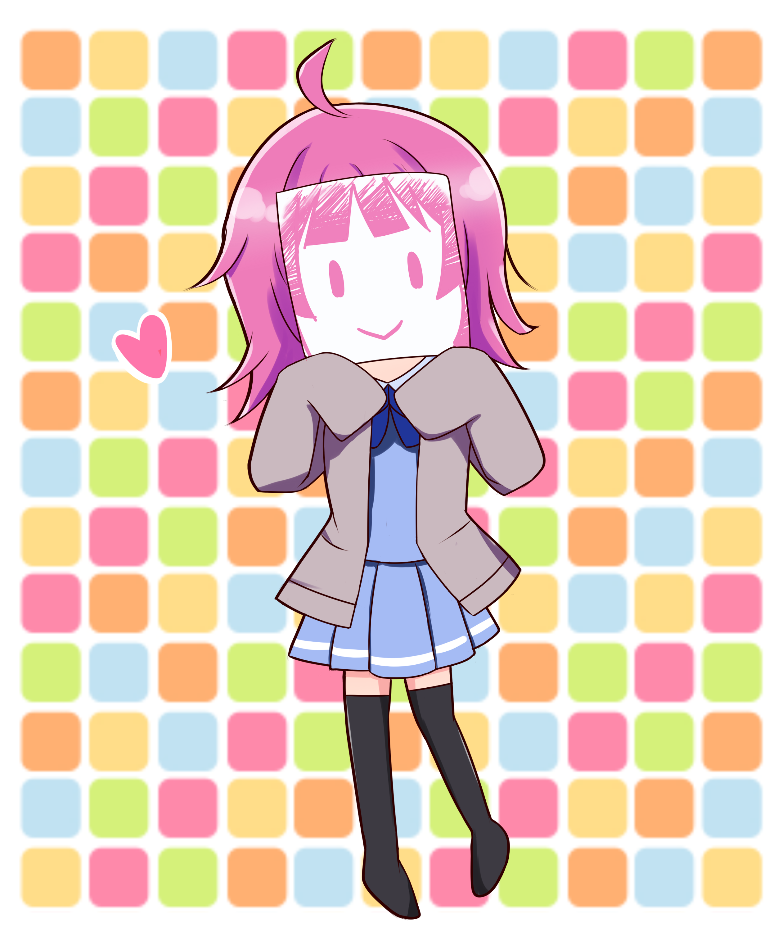 1girl absurdres aqua_shirt aqua_skirt artist_name artist_request black_legwear blue_bow blue_skirt blunt_bangs blush bow bowtie breasts cardigan collarbone covering_face covering_privates drawing drawstring female_focus flat_chest full_body grey_cardigan grey_jacket heart highres holding holding_notebook holding_paper hood hooded_jacket jacket long_sleeves looking_at_viewer love_live! love_live!_nijigasaki_high_school_idol_club love_live!_school_idol_festival miniskirt nijigasaki_school_uniform no_shoes notebook open_clothes open_jacket paper parted_lips pink_hair plaid_clothes plaid_skirt pleated pleated_skirt school_uniform shirt short_hair sketchbook skirt sleeves_past_fingers sleeves_past_wrists small_breasts smile solo standing tennoji_rina