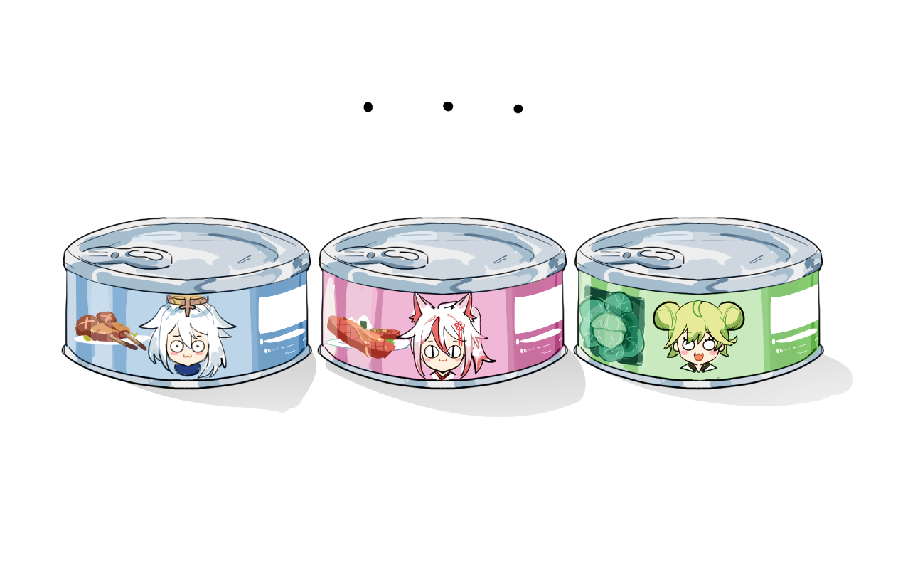 ... 3o_c :3 :d ai-chan_(honkai_impact) animal_ears can canned_food closed_mouth company_connection crossover double_bun emergency_food food fox_ears fox_girl genshin_impact green_eyes green_hair hair_between_eyes hair_bun halo higokumaru honkai_(series) honkai_impact_3rd long_hair looking_at_viewer mihoyo no_humans open_mouth paimon_(genshin_impact) rin_(honkai_impact) shadow simple_background smile white_background white_hair wide-eyed |_|
