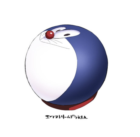 :> ball black_eyes closed_mouth doraemon doraemon_(character) happy japanese_text looking_at_viewer lowres no_humans simple_background smile solo translated ulrich_(tagaragakuin) whiskers white_background