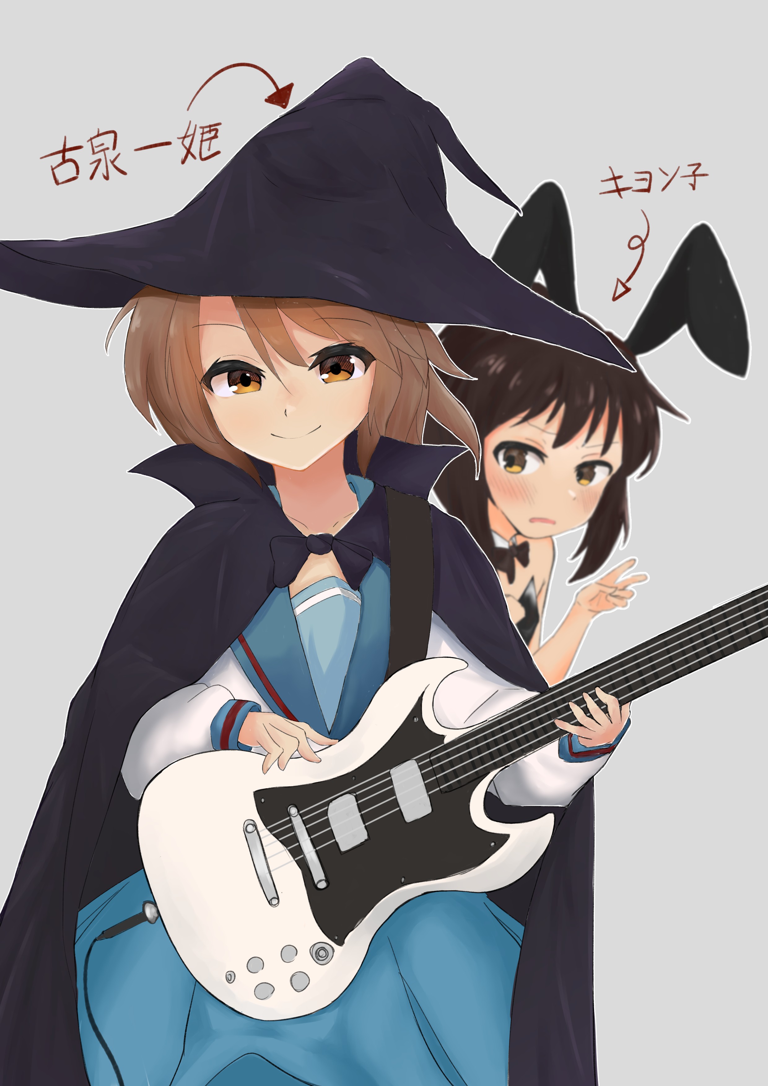 absurdres artist_request genderswap genderswap_(mtf) hat highres kita_high_school_uniform koizumi_itsuki_(female) kyonko playboy_bunny school_uniform suzumiya_haruhi_no_yuuutsu witch_hat