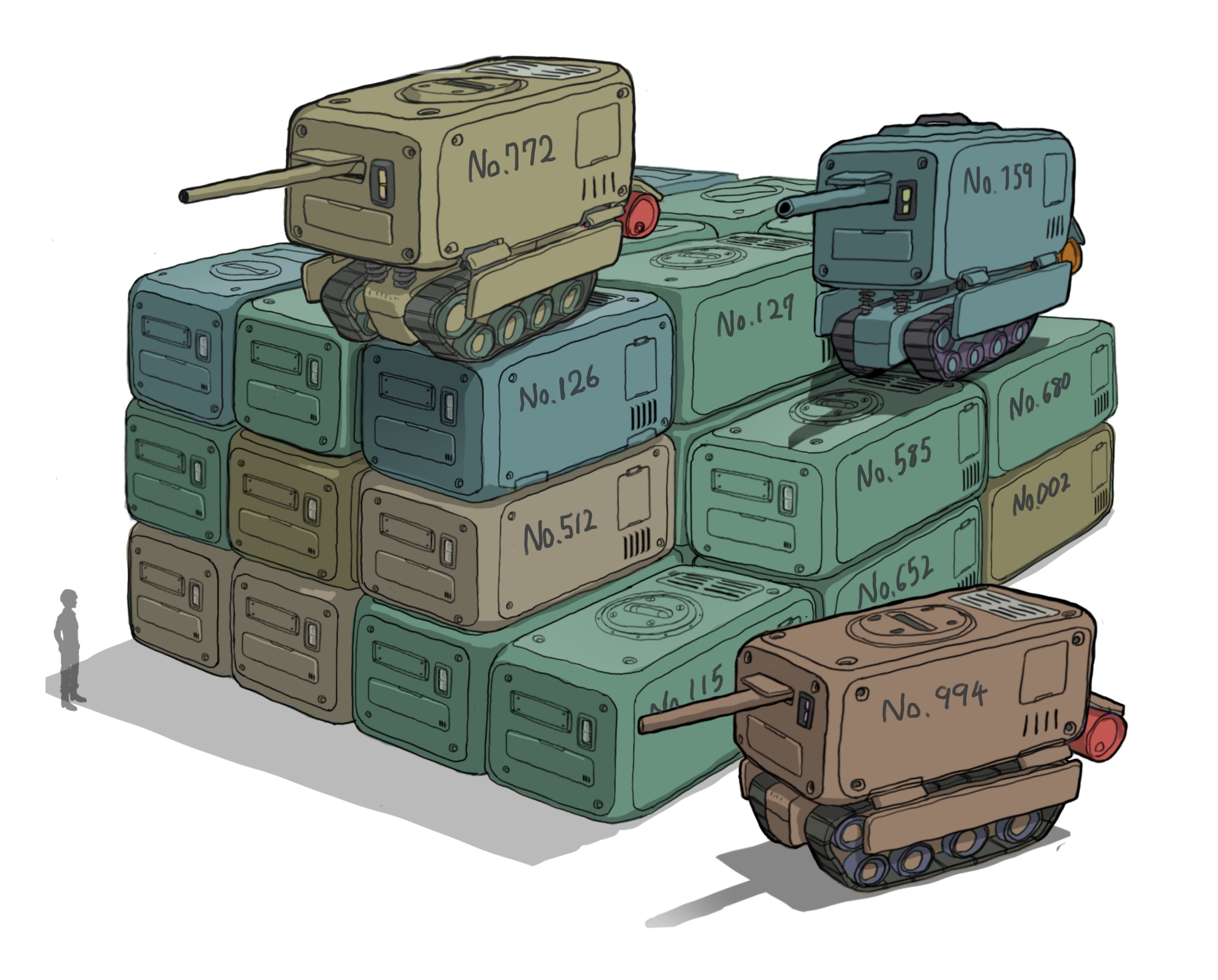 1other caterpillar_tracks gatling_santouhei highres military military_vehicle motor_vehicle original shipping_container silhouette tank vehicle_focus white_background