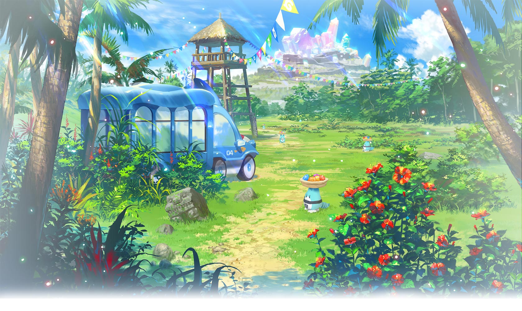 blue_car bus car flower highres kemono_friends kemono_friends_festival lucky_beast_(kemono_friends) motor_vehicle mountain nature sky tree