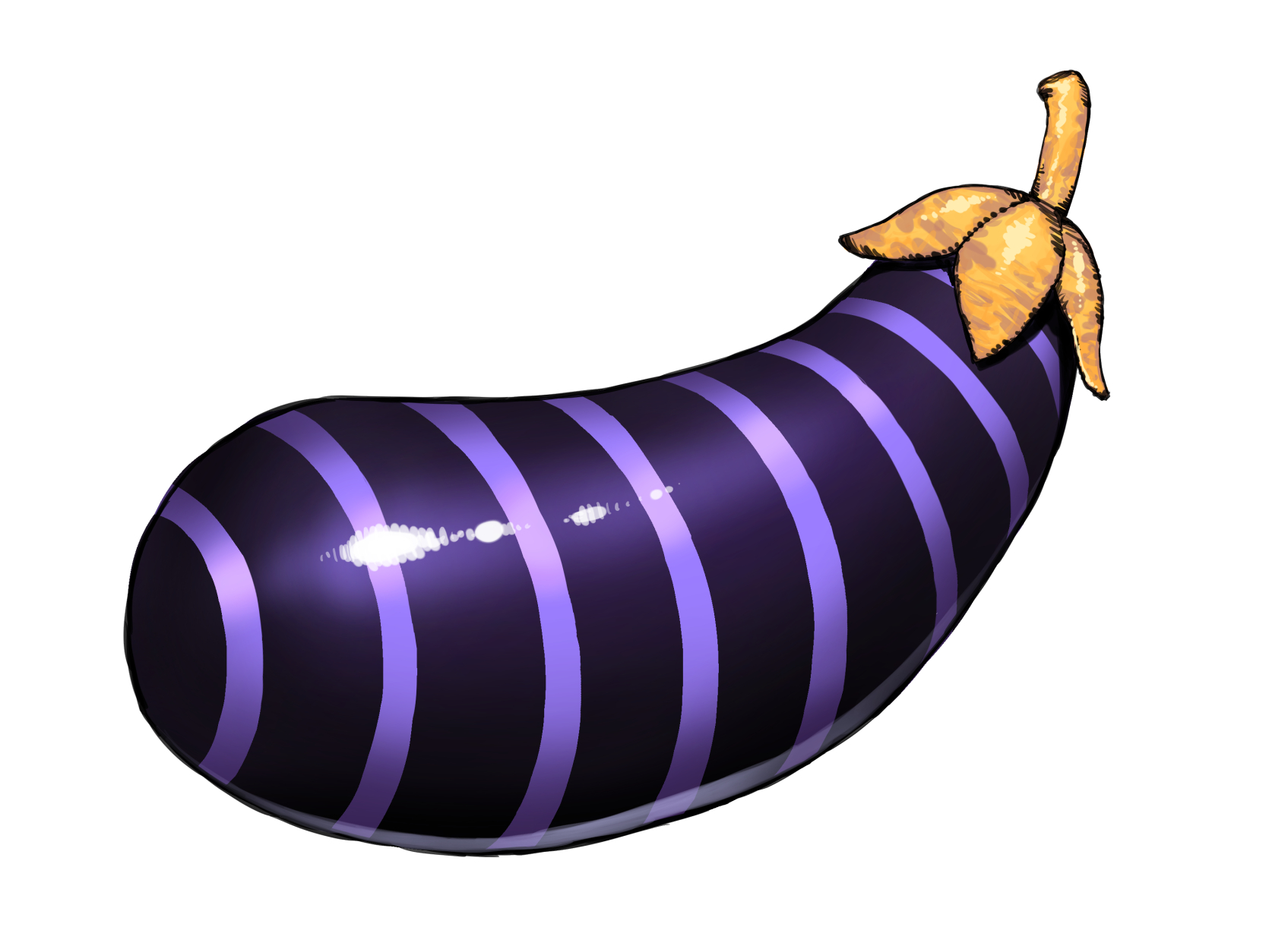 commentary eggplant hamada_yoshikazu highres hololive la+_darknesss no_humans pun simple_background striped virtual_youtuber white_background