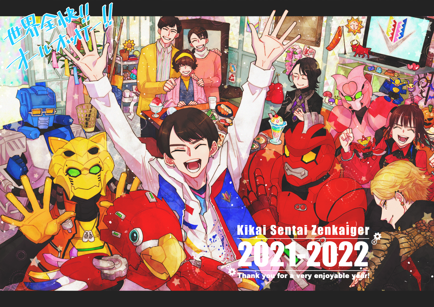 cutanner_goldtsuiker everyone flint_goldtsuiker gaon_(zenkaiger) goshikida_isao goshikida_kaito goshikida_mitsuko goshikida_yatsude highres juran_(zenkaiger) kikai_sentai_zenkaiger magine multiple_boys multiple_girls ricky_goldtsuiker secchan stacey_(zenkaiger) super_sentai tagme uyu vroon zox_goldtsuiker
