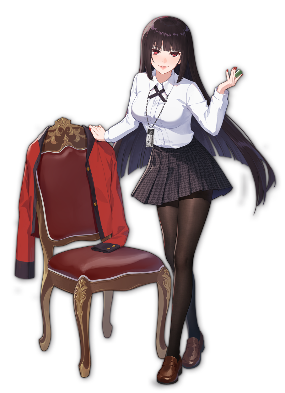 1girl artist_request blunt_bangs brown_footwear chair collared_shirt formal_clothes game_cg highres hime_cut holding houndstooth hyakkaou_academy_school_uniform jabami_yumeko jacket unworn_jacket kakegurui lips long_hair looking_at_viewer mahjong mahjong_soul mahjong_tile official_art pleated_skirt red_jacket red_suit school_uniform shirt simple_background skirt suit suit_jacket third-party_source transparent_background very_long_hair white_shirt yostar