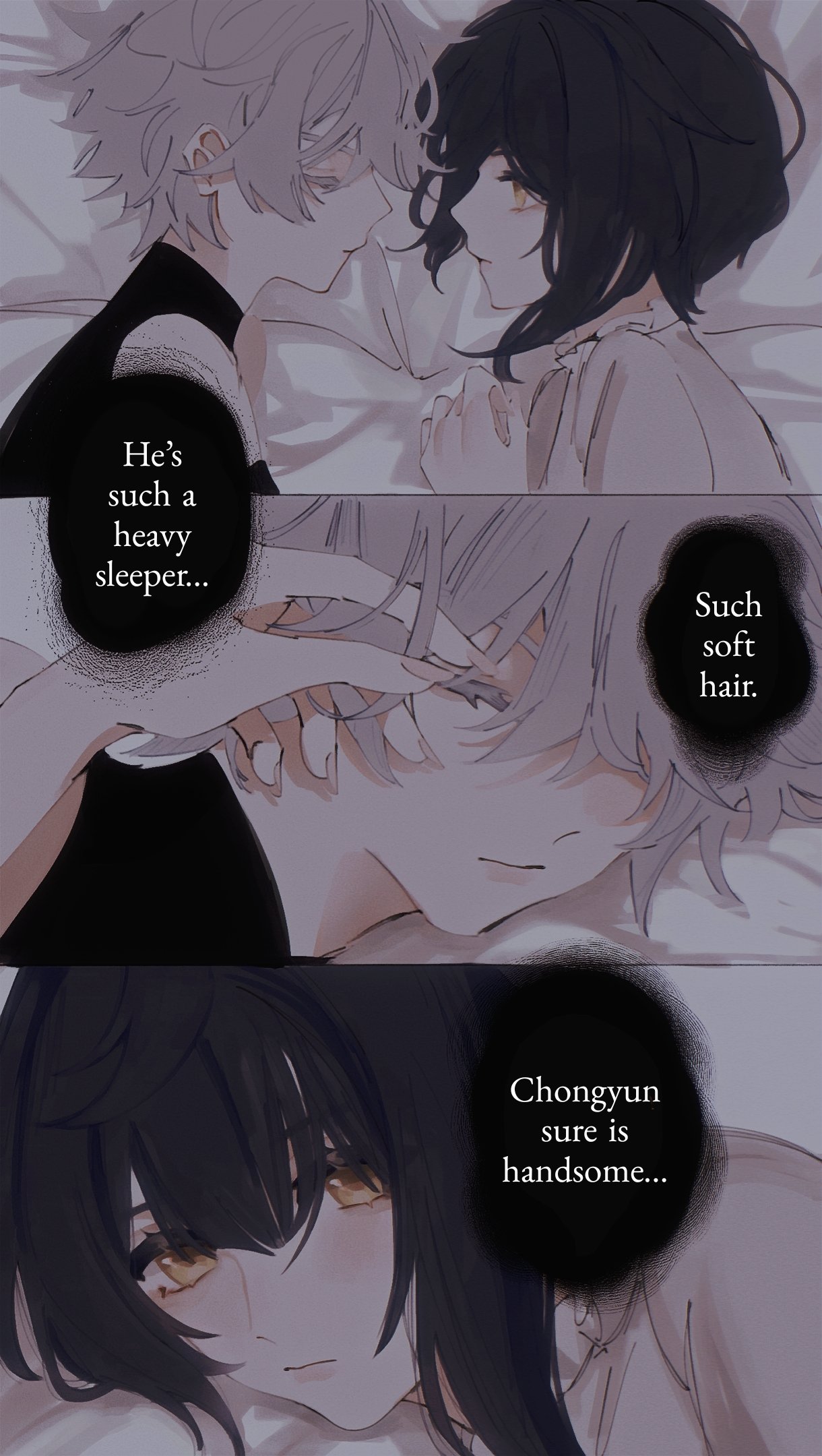 &{ID:7126152 CreatedAt:Sun Apr 10 13:31:04 -0500 2022 Score:5 Width:1220 Height:2160 MD5:c6c9152b9aa5e3d6195cf66206bd57a9 Directory:c6/c9 Image:c6c9152b9aa5e3d6195cf66206bd57a9.jpg Rating:general Source:https://twitter.com/ishijinko/status/1508767798612598785 Change:1731725148 Owner:danbooru CreatorID:6498 ParentID:0 Sample:1 PreviewHeight:350 PreviewWidth:197 Tags:2boys bed bedroom blue_hair blunt_bangs chongyun_(genshin_impact) couple english_text genshin_impact hair_between_eyes highres ishijinko multiple_boys sleeping speech_bubble xingqiu_(genshin_impact) yellow_eyes Title: HasNotes:false HasComments:false FileURL:https://img2.gelbooru.com/images/c6/c9/c6c9152b9aa5e3d6195cf66206bd57a9.jpg PreviewURL:https://gelbooru.com/thumbnails/c6/c9/thumbnail_c6c9152b9aa5e3d6195cf66206bd57a9.jpg SampleURL:https://img2.gelbooru.com/samples/c6/c9/sample_c6c9152b9aa5e3d6195cf66206bd57a9.jpg SampleHeight:1505 SampleWidth:850 Status:active PostLocked:0 HasChildren:false IsVideo:false DisplayDate:10.04.2022 13:31}
