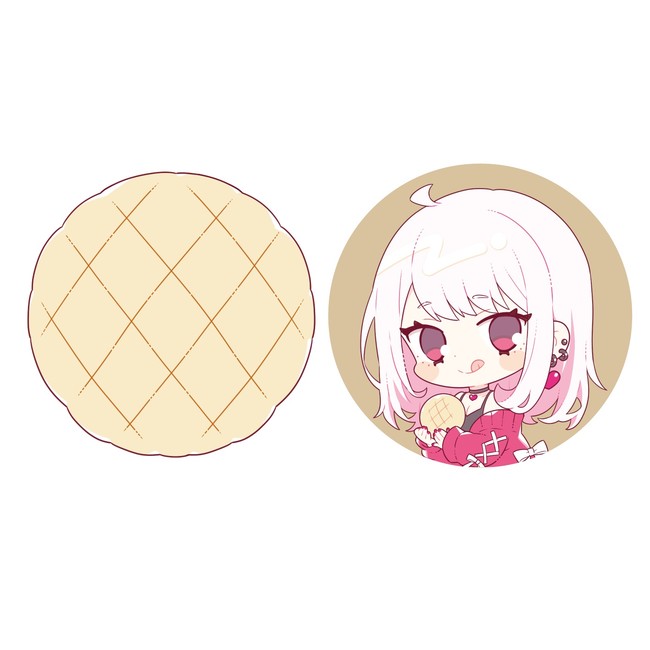 1girl ahoge animal_ears bread cat_ears chibi colored_inner_hair ear_piercing earrings eyelashes food indie_utaite jewelry medium_hair melon_bread multicolored_hair niconico piercing pink_eyes pink_hair hanamiya_rica solo tongue tongue_out uekura_eku utaite white_hair