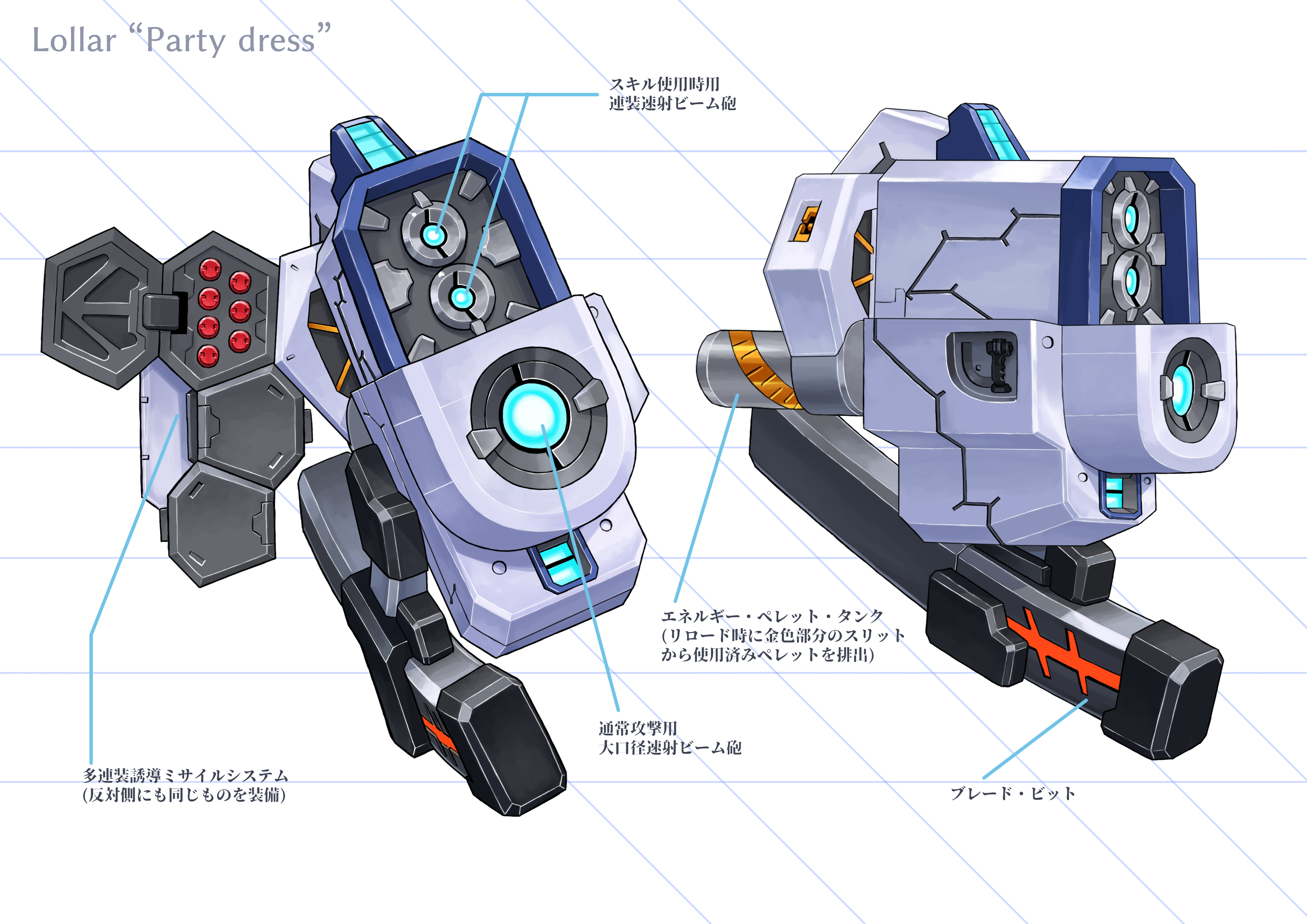 absurdres cannon final_gear highres missile_pod no_humans nue_(fk3203) science_fiction translation_request weapon_focus