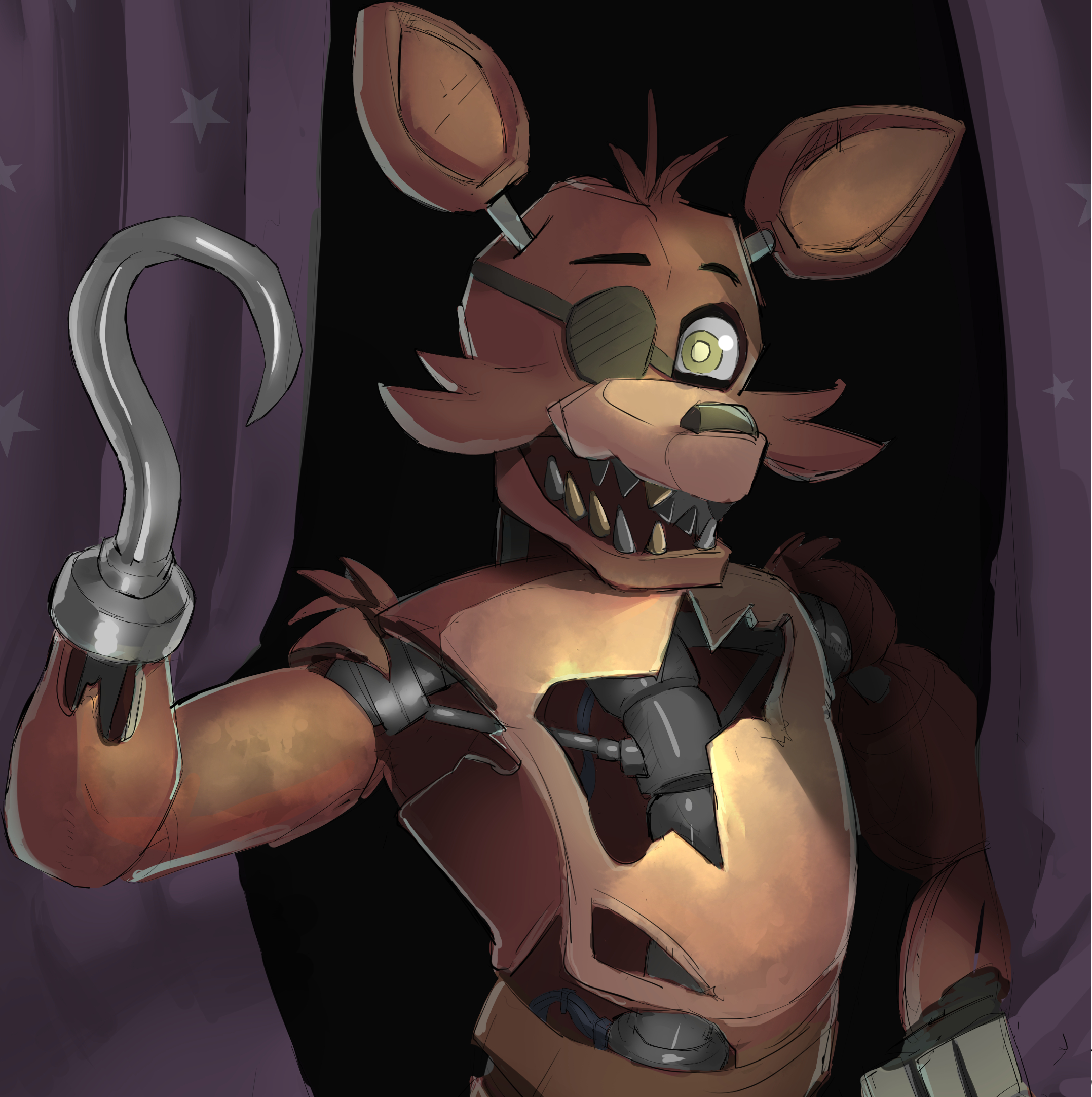 animal_ears eyepatch five_nights_at_freddy's five_nights_at_freddy's_1 fox_ears foxy_(fnaf) highres hook hook_hand oyoso_goku sharp_teeth solo teeth yellow_eyes