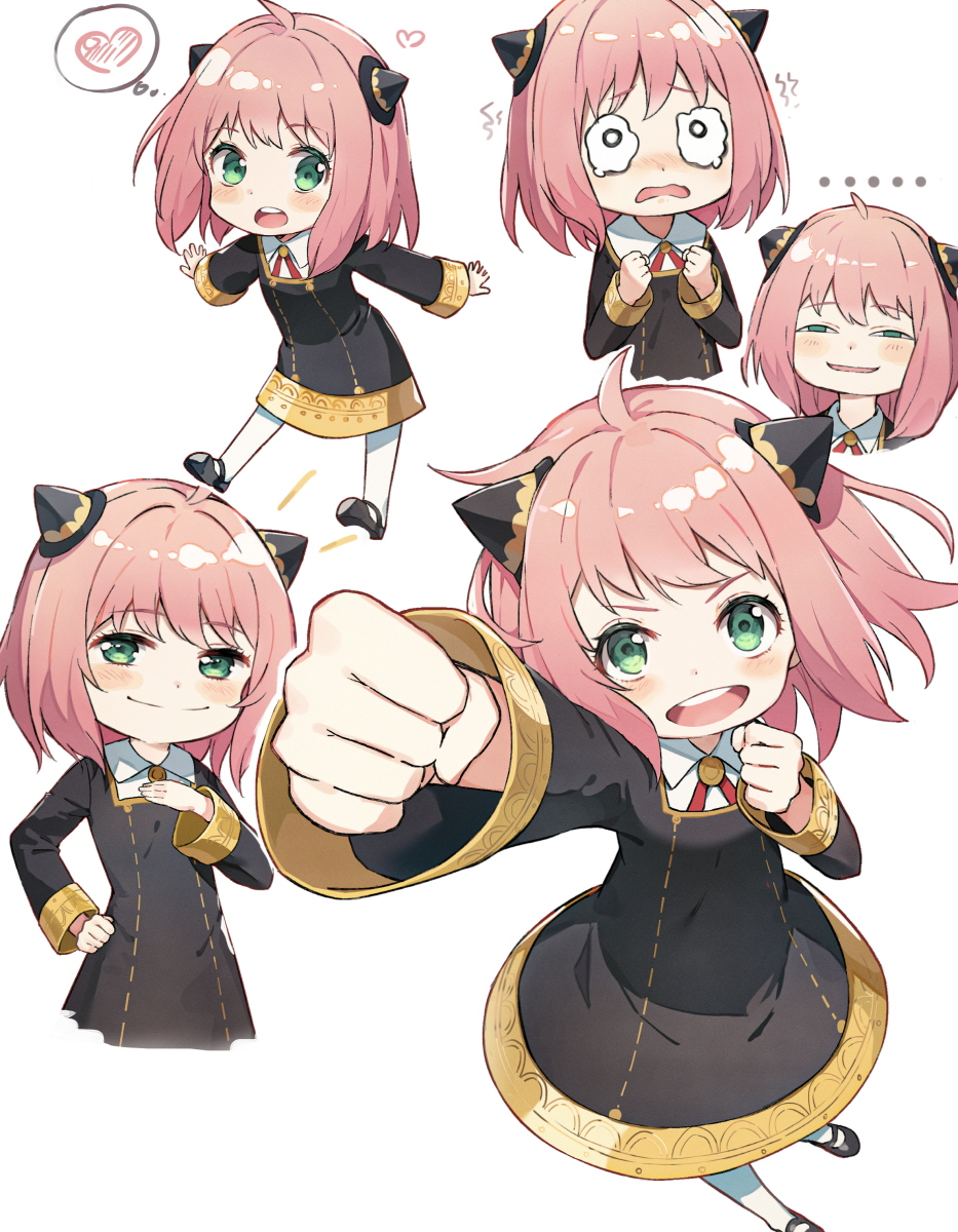 ... 1girl ahoge anya's_heh_face_(meme) anya_(spy_x_family) black_footwear blouse child clenched_hands closed_mouth collared_shirt commentary constricted_pupils eden_academy_school_uniform eyelashes full_body green_eyes half-closed_eyes hand_on_own_hip heart highres huwari_(dnwls3010) legs_apart long_sleeves looking_at_viewer mary_janes medium_hair meme multiple_views open_mouth outstretched_arm outstretched_hand pink_hair school_uniform shirt shoes simple_background smile smug speech_bubble split_mouth spy_x_family teeth thought_bubble upper_teeth_only white_background white_shirt wide_sleeves