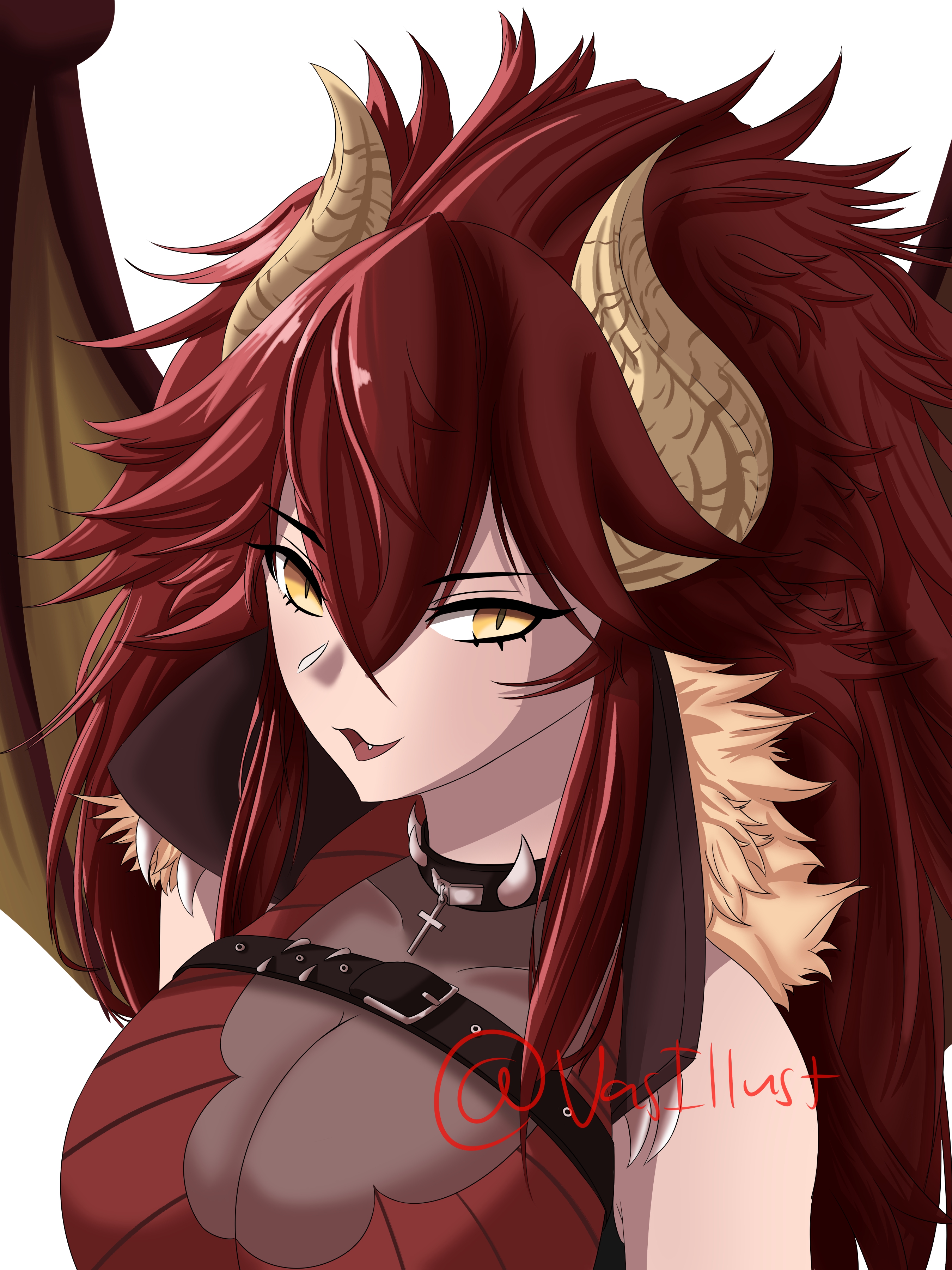 1girl absurdres collar dragon_girl highres horns red_hair spiked_collar spikes virtual_youtuber vshojo white_background yellow_eyes zentreya