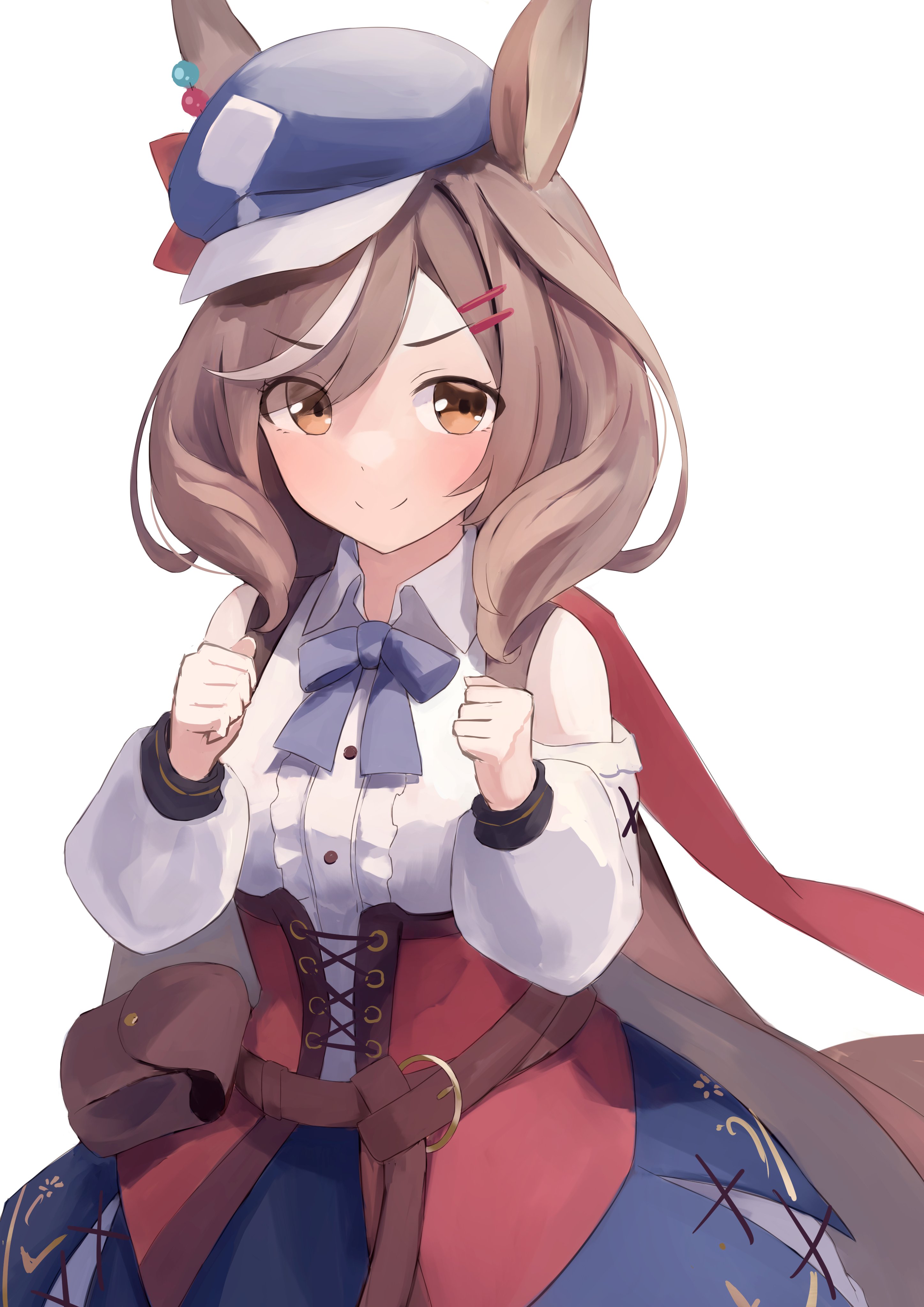 1girl absurdres animal_ears brown_eyes brown_hair closed_mouth collared_shirt hair_ornament hairclip highres horse_ears horse_girl looking_at_viewer matikanetannhauser_(clippety-tippety-clop)_(umamusume) matikanetannhauser_(umamusume) minau37 ribbon shirt solo umamusume upper_body