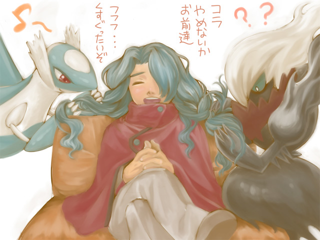 1boy ? ?? blue_hair brown_footwear cape closed_eyes closed_mouth commentary_request couch crossed_legs darkrai gen_3_pokemon gen_4_pokemon grey_pants hair_over_one_eye hairdressing happy latios legendary_pokemon long_hair looking_at_another male_focus musical_note mythical_pokemon natto_soup nintendo on_couch one_eye_covered open_mouth own_hands_clasped own_hands_together pants pokemon pokemon_(anime) pokemon_(creature) pokemon_the_series:_diamond_and_pearl red_cape red_eyes shoes sitting smile teeth tobias_(pokemon) translation_request upper_teeth_only