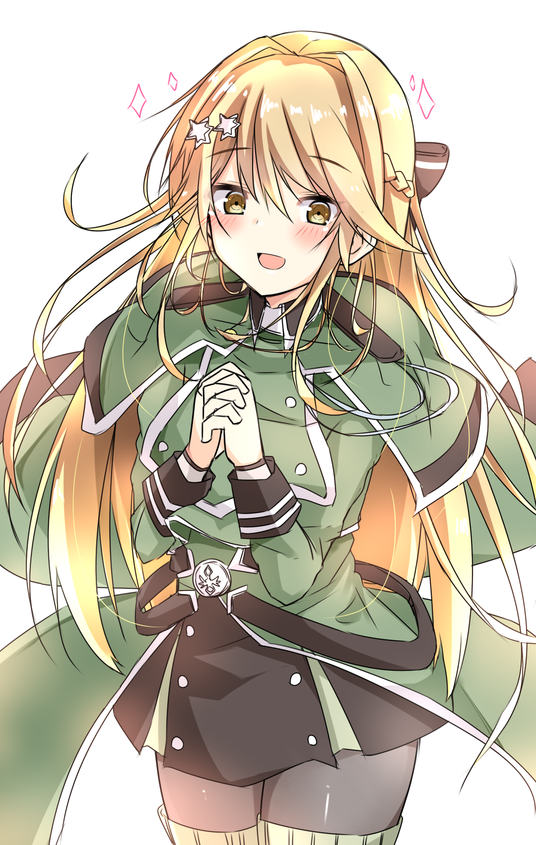 1girl black_pantyhose blonde_hair blush dot_nose exosister_elis highres kinokohaman pantyhose simple_background solo tagme white_background yellow_eyes yu-gi-oh!