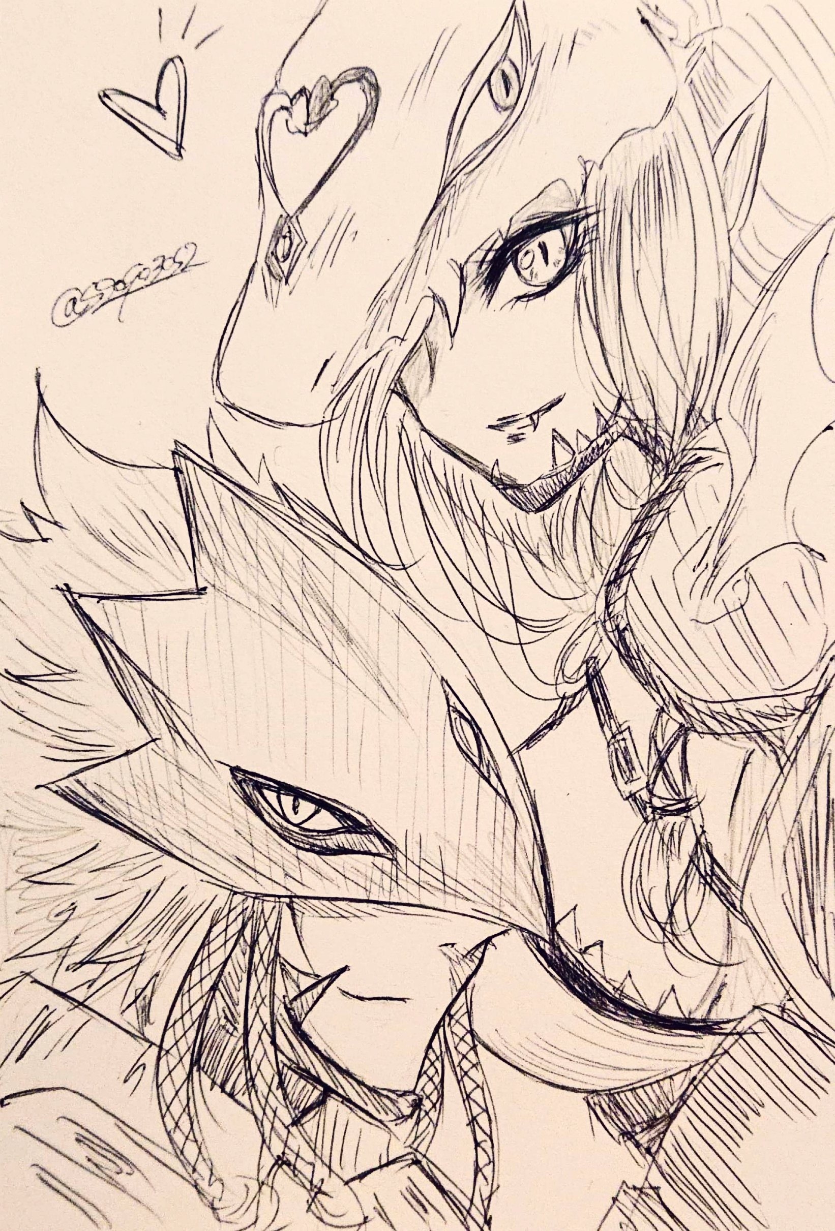 absurdres beelzebumon_(digimon_xros_wars) couple digimon fang highres looking_at_viewer mask mervamon smile snake wings