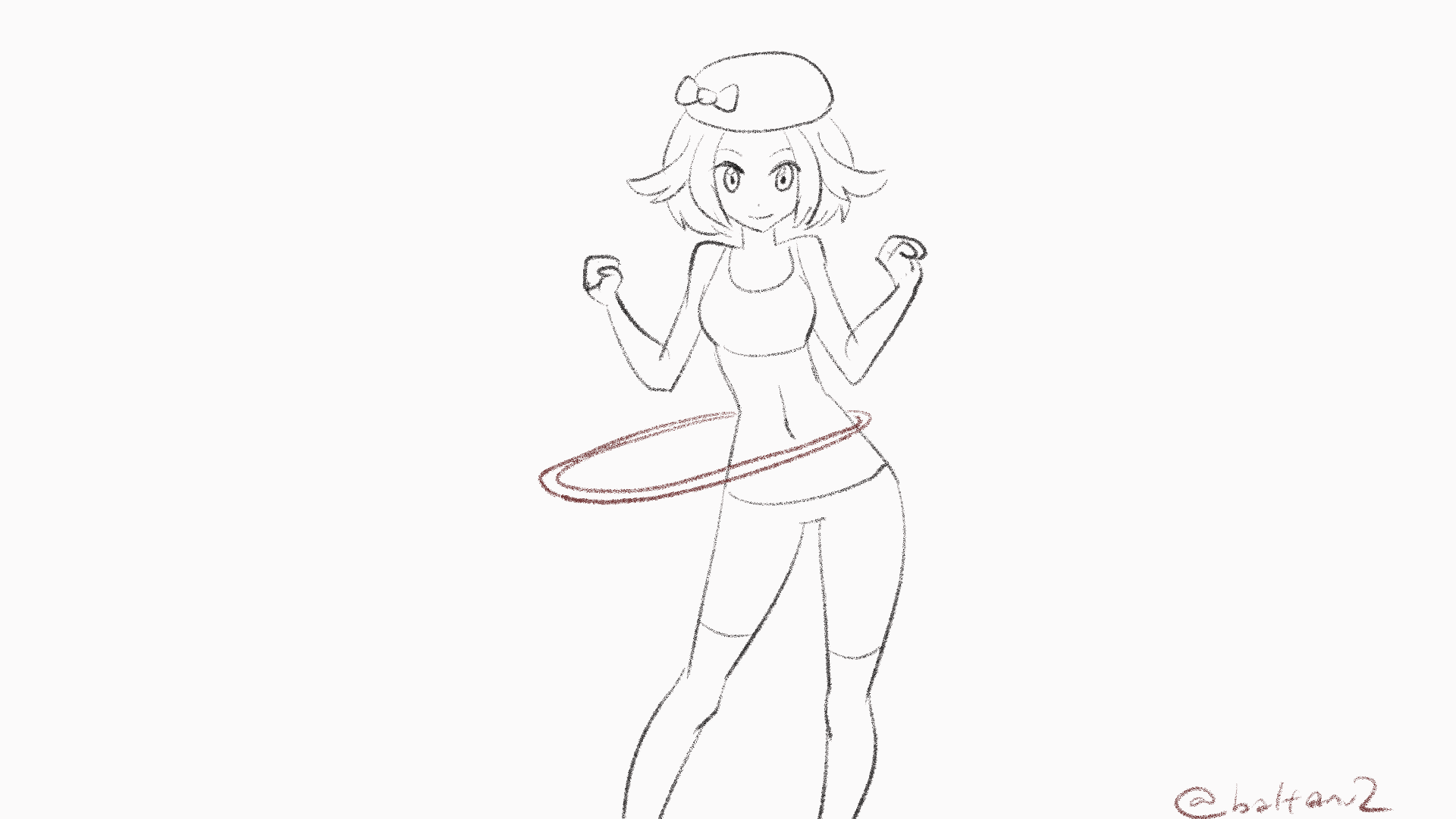 1girl animated animated_gif baltanv2 beret bianca_(pokemon) bike_shorts bow drawfag facing_viewer feet_out_of_frame hat highres hoop hula_hoop medium_hair midriff navel nintendo pokemon pokemon_black_2_and_white_2 smile solo sports_bra tareme twitter_username