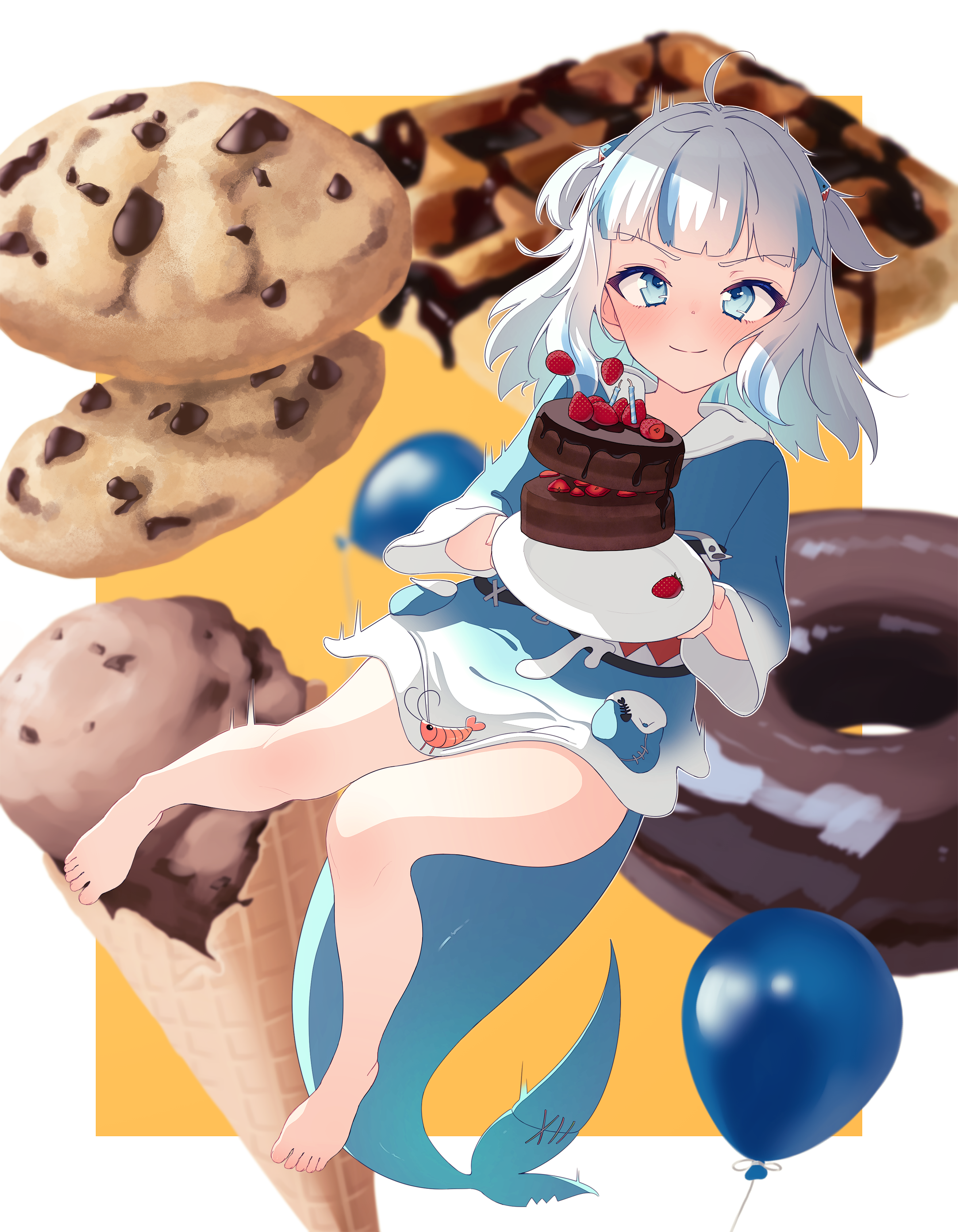 absurdres blunt_bangs cookie fins fish_tail food gawr_gura highres hololive hololive_english lucasyecla99 tail virtual_youtuber