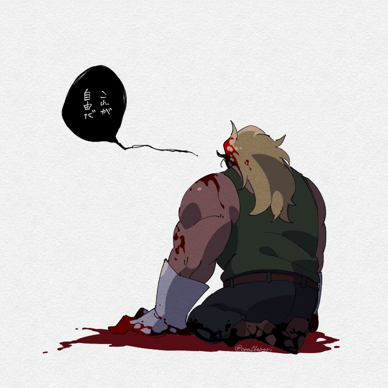 1boy artist_request blonde_hair blood blood_on_face douglas_bullet full_body long_hair manly muscular one_piece one_piece:_stampede translation_request aged_down