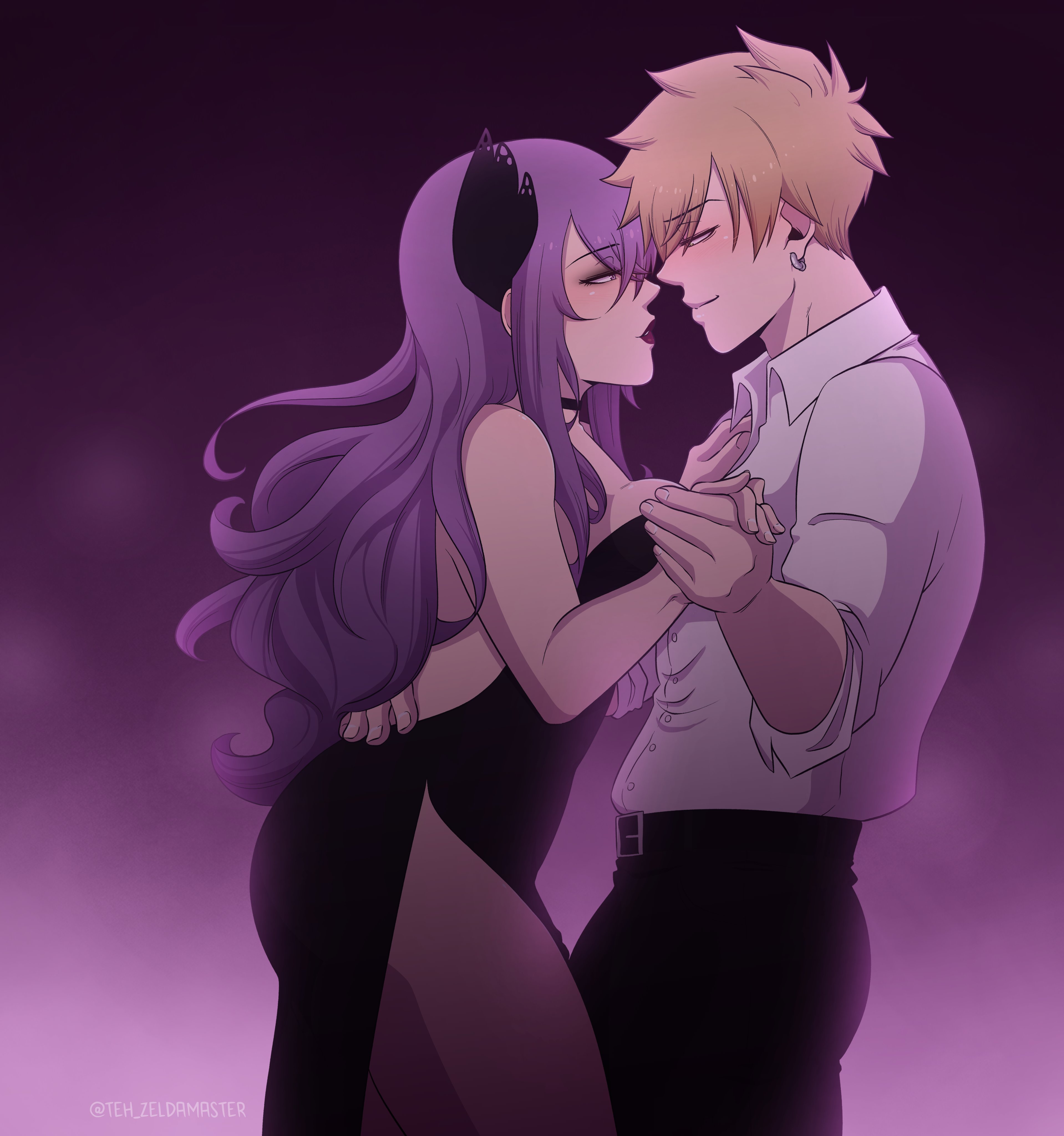 1boy 1girl absurdres black_dress blonde_hair breasts dress eden's_zero hetero highres holy_(eden's_zero) large_breasts long_hair purple_hair weisz_steiner