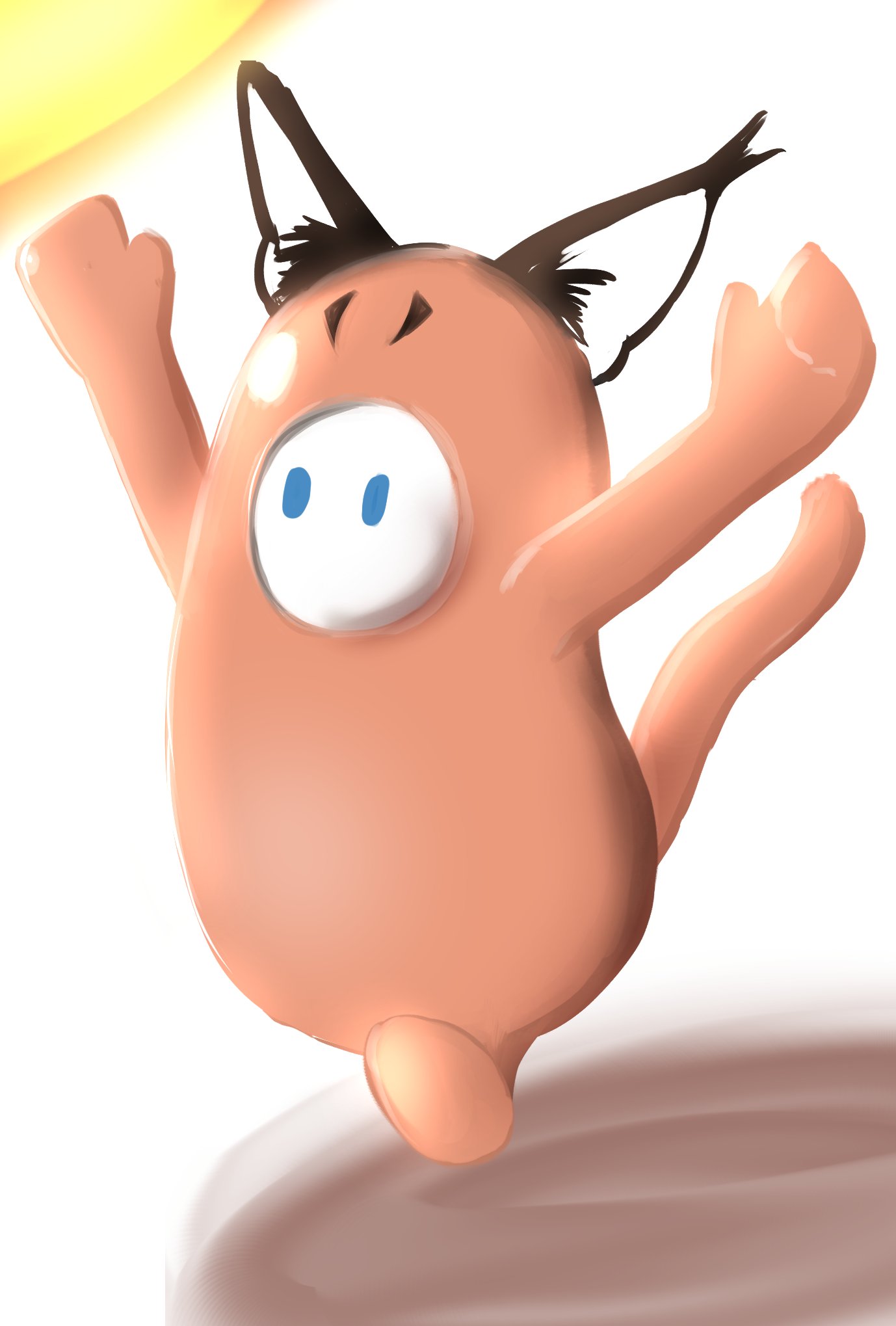 animal_costume animal_ears bow bowtie caracal_(kemono_friends) fall_guys highres kemono_friends kemono_friends_v_project microphone mujinamori_tamakichi parody skirt virtual_youtuber
