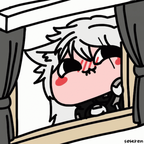 1girl animal_ears animated animated_gif arknights blush hiding lappland_(arknights) lip_biting lowres peeking seseren