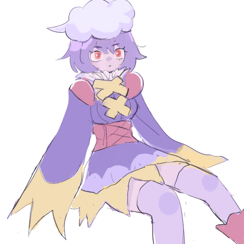 1girl :< corset dress drifblim gen_4_pokemon long_tongue looking_ahead nintendo parted_lips personification pokemon purple_dress purple_hair purple_skirt red_eyes sahau228 short_hair sitting sketch skirt solo thighhighs tongue triangle_mouth very_long_tongue