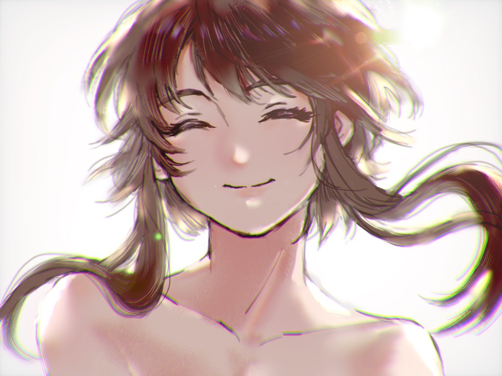 1girl bare_shoulders brown_hair chai_xianghua collarbone closed_eyes namco smile soulcalibur soulcalibur_vi