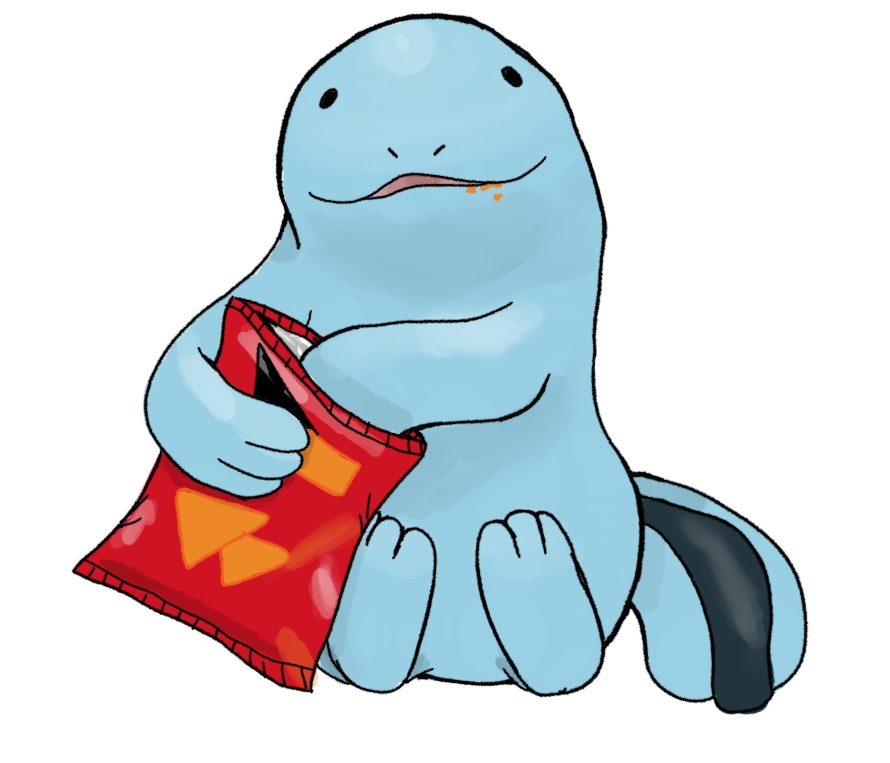 :3 doritos drawfag eating food food_on_face gen_2_pokemon nintendo no_humans pokemon pokemon_(creature) quagsire simple_background sitting tail white_background