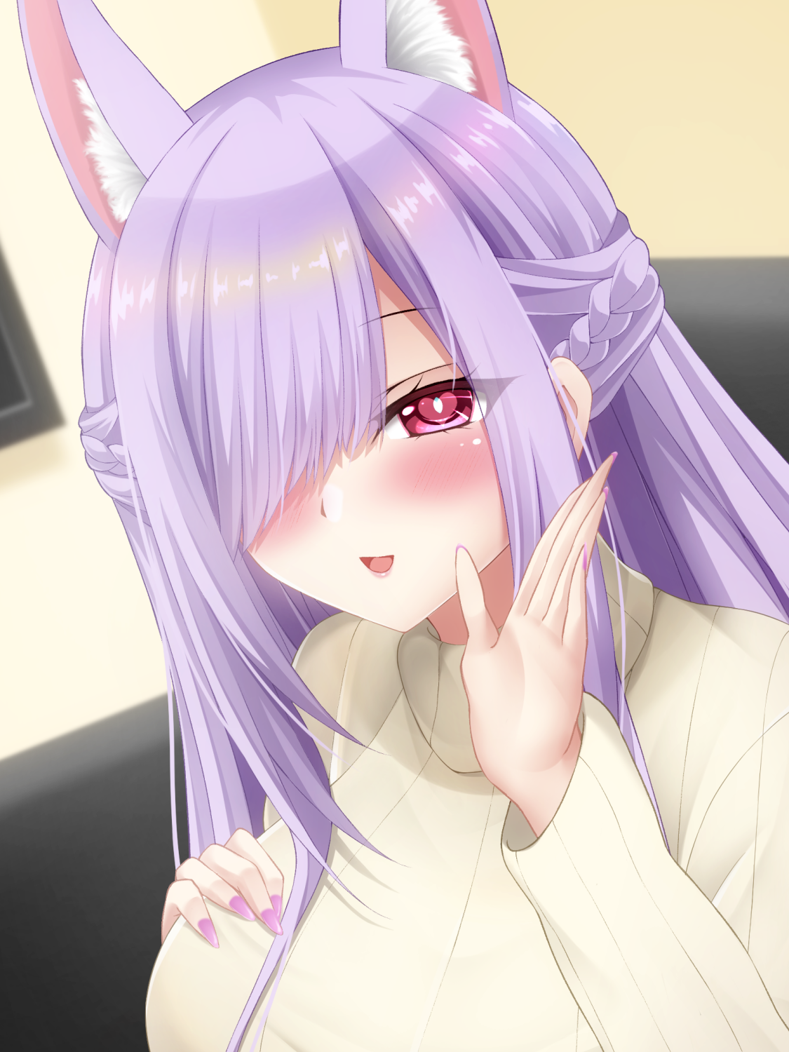 &{ID:7456953 CreatedAt:Sun Jul 10 12:02:41 -0500 2022 Score:4 Width:1125 Height:1500 MD5:cf8477fdc299b83d06c742784ea7d121 Directory:cf/84 Image:cf8477fdc299b83d06c742784ea7d121.png Rating:general Source:https://www.pixiv.net/artworks/97926113 Change:1673700696 Owner:danbooru CreatorID:6498 ParentID:0 Sample:1 PreviewHeight:350 PreviewWidth:262 Tags:1girl :d animal_ears blush braid breasts couch fox_ears fox_girl french_braid hair_over_one_eye hand_on_own_chest heart heart-shaped_pupils highres indoors kamishiro_natsume large_breasts long_hair looking_at_viewer melty+ momijizuki_luna nail_polish open_mouth purple_hair purple_nails red_eyes ribbed_sweater shiny_skin smile solo sweater symbol-shaped_pupils talking turtleneck turtleneck_sweater upper_body very_long_hair virtual_youtuber whispering Title: HasNotes:false HasComments:false FileURL:https://img2.gelbooru.com/images/cf/84/cf8477fdc299b83d06c742784ea7d121.png PreviewURL:https://gelbooru.com/thumbnails/cf/84/thumbnail_cf8477fdc299b83d06c742784ea7d121.jpg SampleURL:https://img2.gelbooru.com/samples/cf/84/sample_cf8477fdc299b83d06c742784ea7d121.jpg SampleHeight:1133 SampleWidth:850 Status:active PostLocked:0 HasChildren:false IsVideo:false DisplayDate:10.07.2022 12:02}