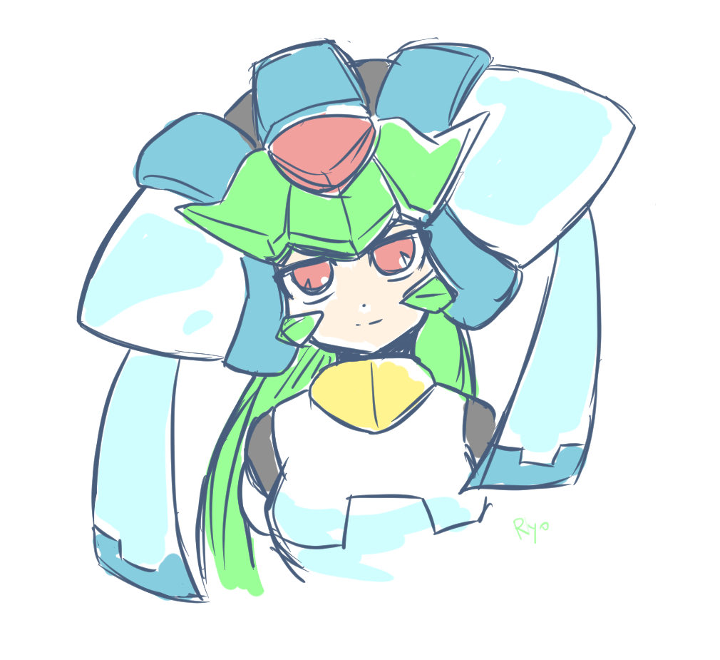 android armor green_hair helmet long_hair mega_man_(series) mega_man_x_(series) mega_man_x_dive mega_man_zx pandora_(mega_man) red_eyes red_gem robot_girl ryokuchadattayo smile